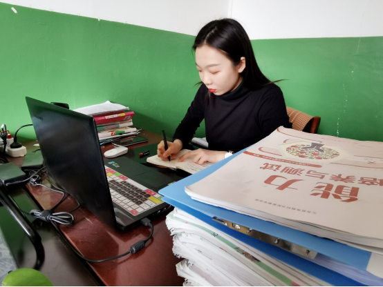 “刀在石上磨,人在事中练”。当李晓冰真正投入在讲台上时,她发现教育事业的魅力就是把热爱变成习惯,把用心变成日常,把脚踏实地化作理所应当。支教期间,她承担过四个班的语文课,两个班的思想品德课程,其中还包括毕业年级的员工;同时她还和支教团的其他队员一起组织了爱心课堂、党课团课、定期家访、辅导作业等活动。从学校的基础任课教学到教学教务行政工作再到党员活动,学校的每个地方都有她工作的身影,只要听说与员工相关的事情,她也总是第一个出现。作为“新手老师”许多事情都是从头学起,教案不会写她就一遍遍的反思修改;教学方法有问题她就厚着脸皮去找老教师请教,一次次的听课做笔记;员工工作不到位,就耐下心来一个个的解决。除了参与集体备课之外,她还利用剩余时间认真进行二次备课,课前做好充分的教学准备。同时,她还参与了学校语文组举办的阅读课教学设计评比,她备课的《艾青诗选》阅读指导课教案在全校获得了三等奖。